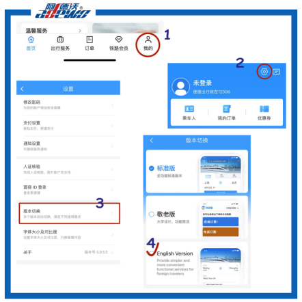 Scarica l'app 12306, vai su "Io (in basso) → "Impostazioni" → "cambia versione" → seleziona inglese per passare alla versione inglese.