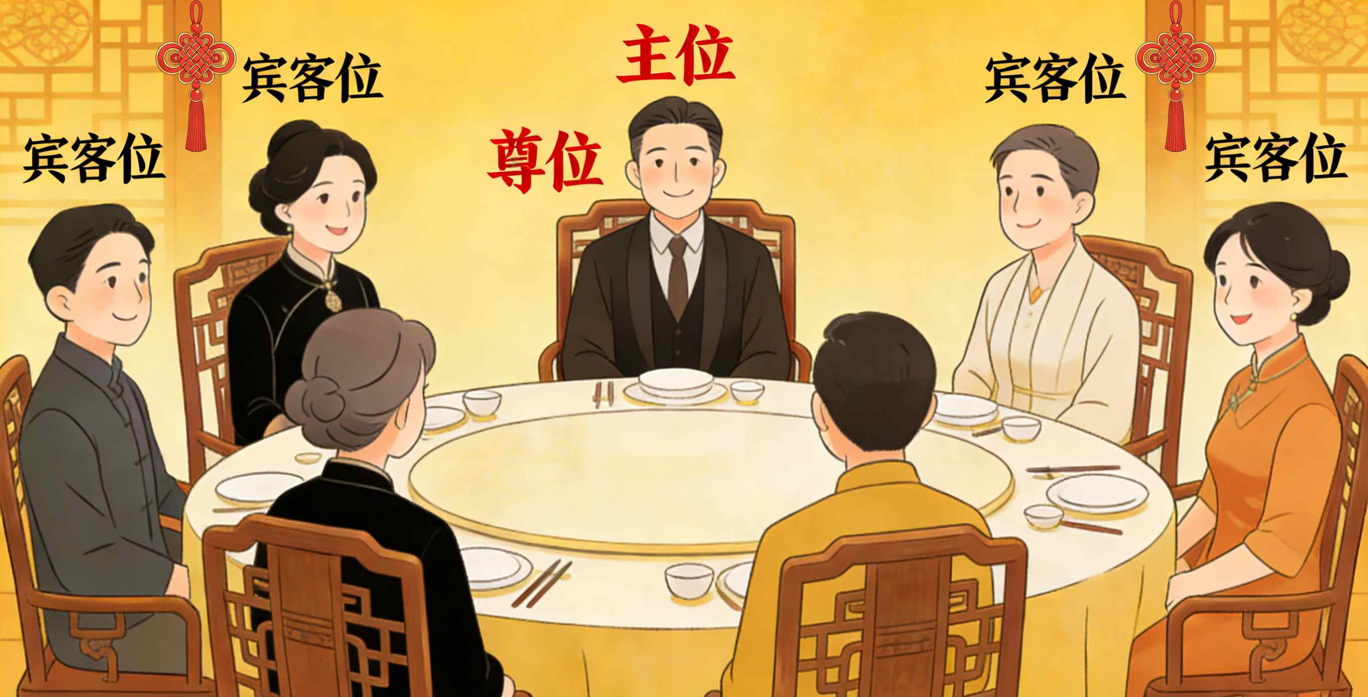 Nelle sedute tradizionali cinesi, la posizione più onorata è solitamente rivolta a sud, situata sul lato settentrionale del tavolo.