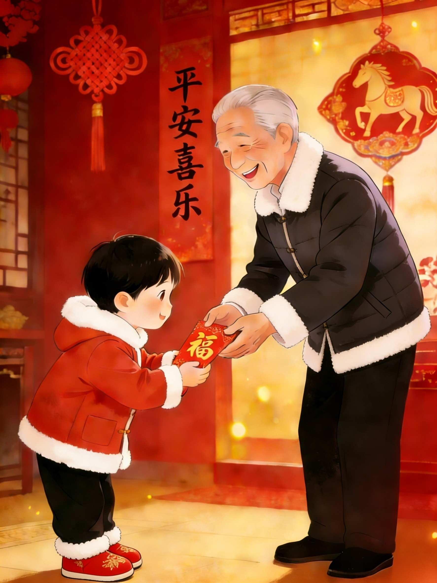 Più tardi, una famiglia regalò al figlio monete di rame in carta rossa. A mezzanotte, il mostro“祟" entrò e voleva spaventare il bambino, ma fu spaventato dalle monete di rame in carta rossa e scappò. Da quel momento in poi, sempre più persone imitarono di dare ai loro figli monete di rame in carta rossa per inseguire il mostro“祟”.
