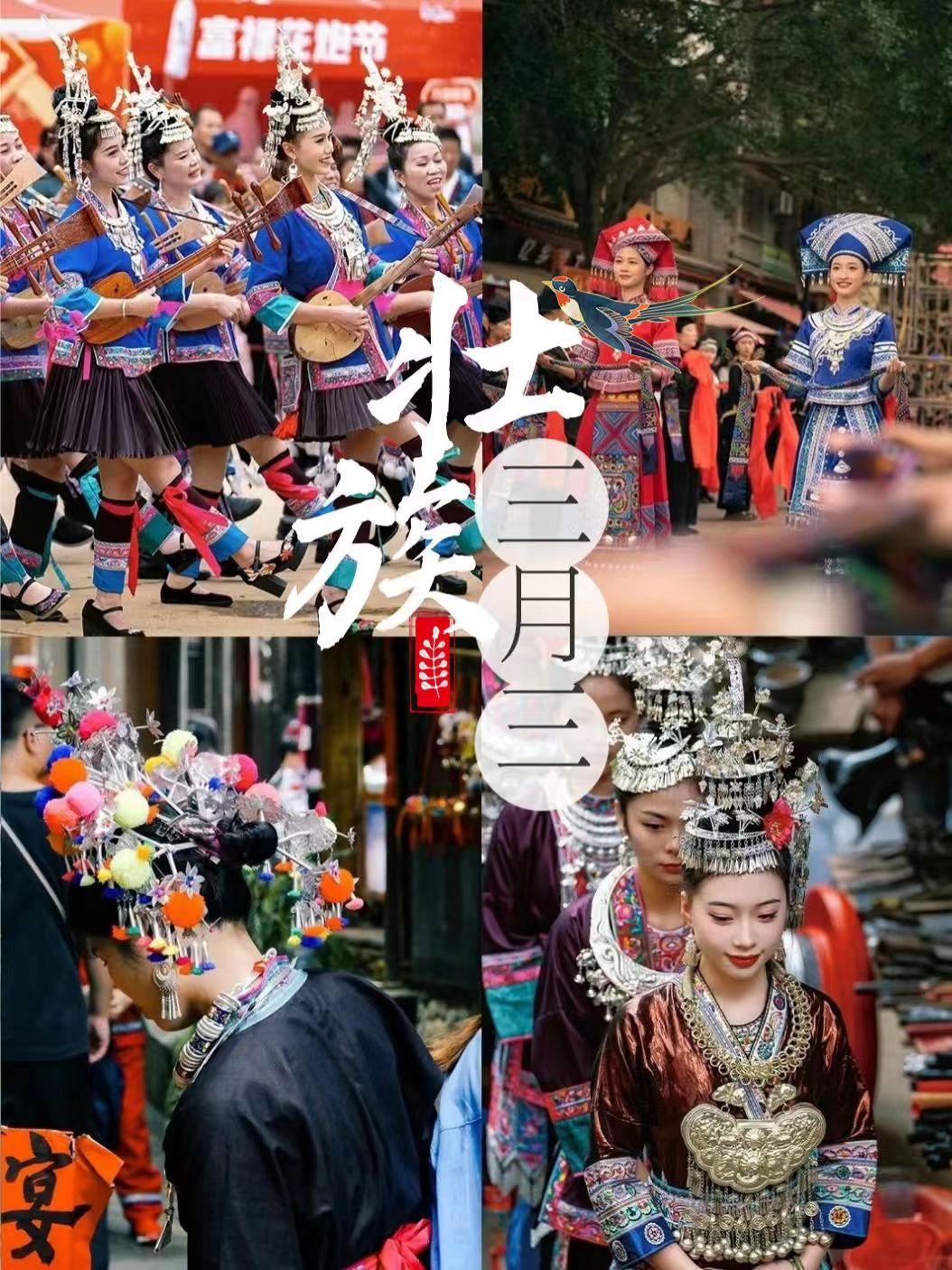 Questo periodo segna un'importante festa tradizionale conosciuta come "Sanyuesan" (il terzo giorno del terzo mese lunare), un momento in cui le persone onorano i loro antenati, pregano per la buona sorte e celebrano l'unità tra il popolo Zhuang. Le origini della festa si possono far risalire ad antiche leggende.